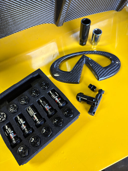 Socal Q Partsin stockSuper strong race lug nuts (16+4 locks ) Available in: M12 x 1.25 (Nissan ,Infiniti ) M12 x 1.5 (Toyota) Please confirm wheel specs before orde...